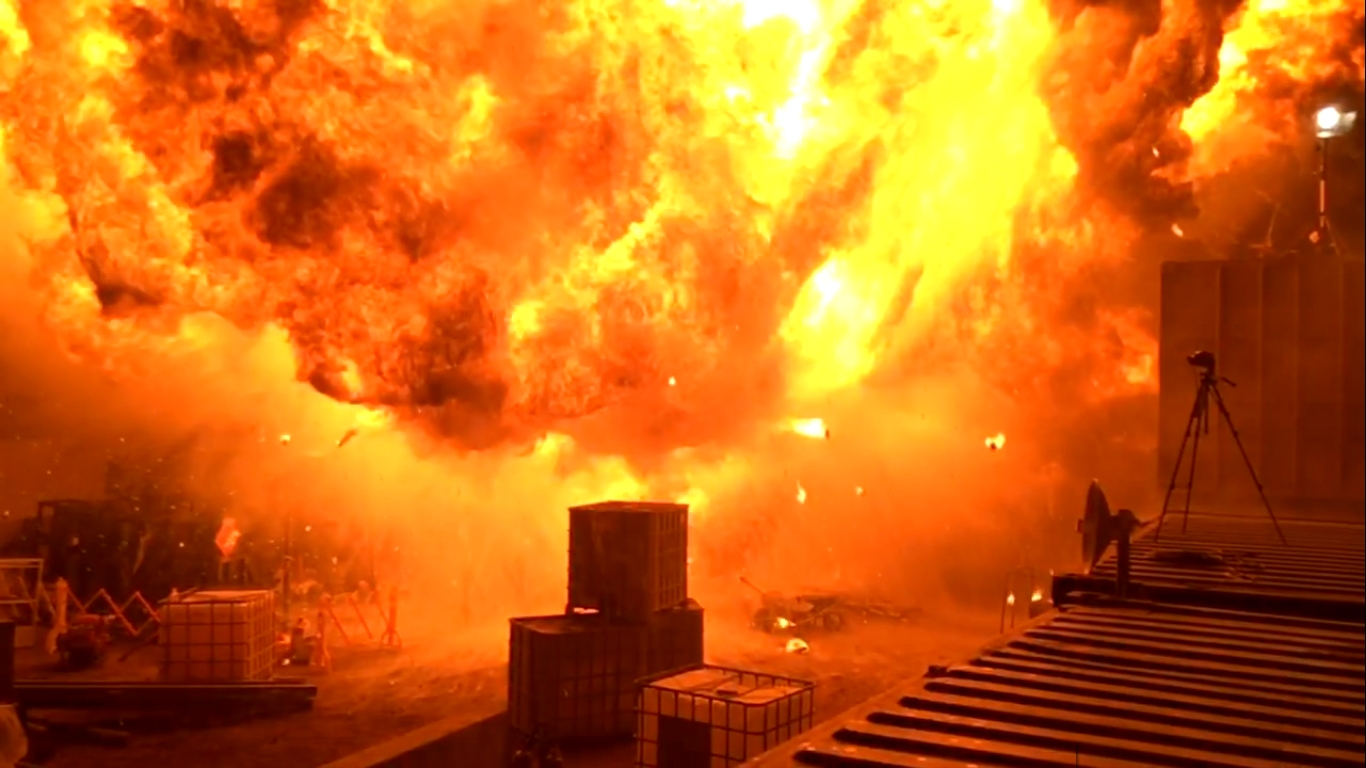 Our arsenal of pyrotechnic effects include: bullet hits and body hits to fuel explosions, exploding props, breaking glass windows, fireworks, sparklers, handheld flares, coloured smoke, stage and theatre pyrotechnics including sparking devices - all of which are supervised by our licenced pyro technicians. The wide range of firing systems which we use, allow for perfect timing and sequencing of explosions and hits.
